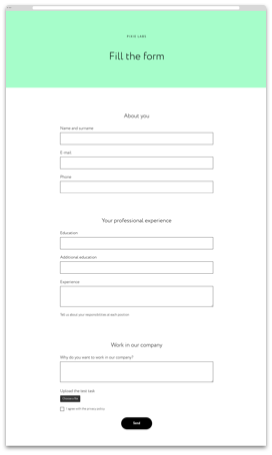 Проводите опросы, собирайте резюме и тестовые задания соискателей, открывайте онлайн-бронирование, собирайте информацию с помощью красивых форм.