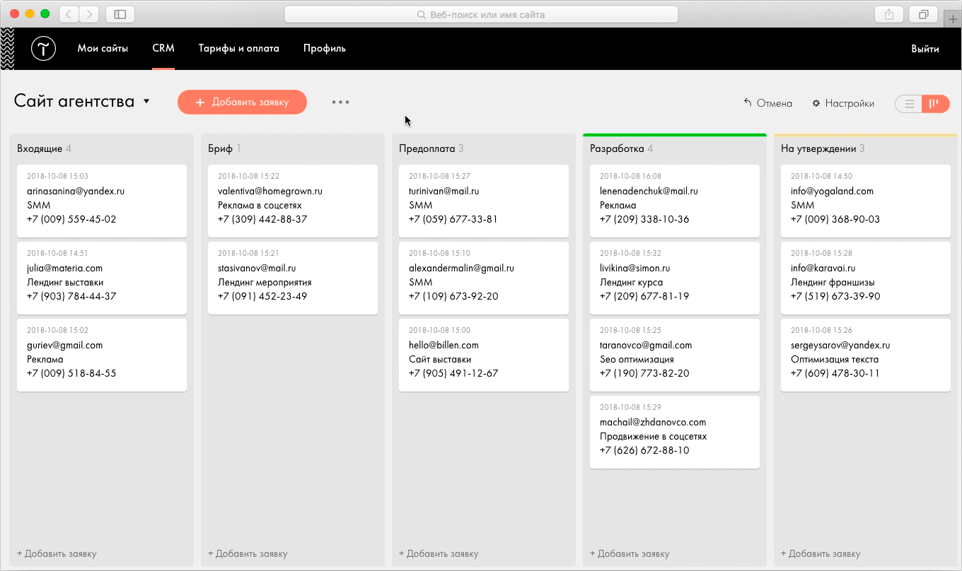 С Тильдой интегрированы 20+ сервисов приема данных: Email, Mailchimp, Google Таблицы, Google Формы, SendGrid, GetResponse, UniSender, SendinBlue, Mailerlite, SendPulse, AmoCRM, Мегаплан, Pipedrive, Битрикс24, Telegram, Slack, Trello, Zapier, Zoho CRM, Hubspot, Notion, Salesforce, Monday.com. Также вы можете принимать данные с помощью Webhook или собственного скрипта.